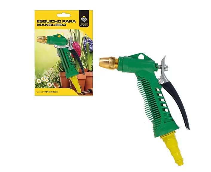 Este esguicho para jardim é ideal para o seu espaço verde. Com o corpo em liga de zinco, aço carbono e pp, é uma peça resistente e durável. Possui bico de metal reforçado, o que garante uma maior resistência e durabilidade. O gatilho com trava permite uma regulação do fluxo de água mais precisa e eficiente. Além disso, conta com um conector macho para engate rápido de 12,7mm (1/2"), o que facilita o uso em diversas situações. Com dimensões de 18 x 3 x 16,5cm, este esguicho é indicado para uso doméstico. A embalagem vem com suporte e as medidas são de 18,5 x 11,7 x 3cm. A cor predominante é verde. A marca House Tools garante qualidade e eficiência. Renove o seu jardim com este esguicho para jardim!