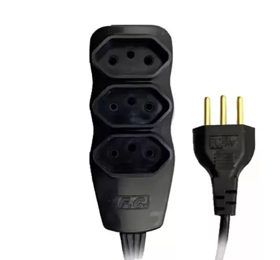 Extensão Elétrica FC New Tripolar PP 3m Preta 03 Tomadas 25386