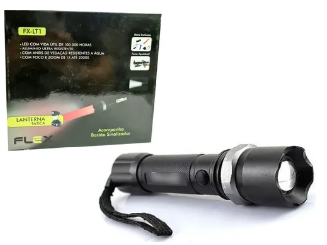 Lanterna Tatica Lanterna Tática Police 800 Lumens com 200W de potência, feita em liga de alumínio aeronáutico a Prova d´água, choques e explosões. Utiliza LED CREE 05 de 200W de potencia e 500 Lúmens de intensidade do feixe luminoso com alcance de 300m na escuridão Led com vida útil de 100.000 horas Regulagem de foco e zoom com catraca. Possui 3 modelos de iluminação , FORTE , BAIXO e STROBO. Extremanente leve e confiável. Funciona com bateria recarregável 18650 de 3200 mAh ou 3 baterias AAA. Vida útil de 50.000 a 100.000 hs. Acompanha: -bateria recarregável LI-ION 18650 de 3200 mAh -carregador bivolt de parede -cordão de segurança. - Bateria recarregável (inclusa) ou 3 pilhas AAA (não inclusas). - Cor Preta