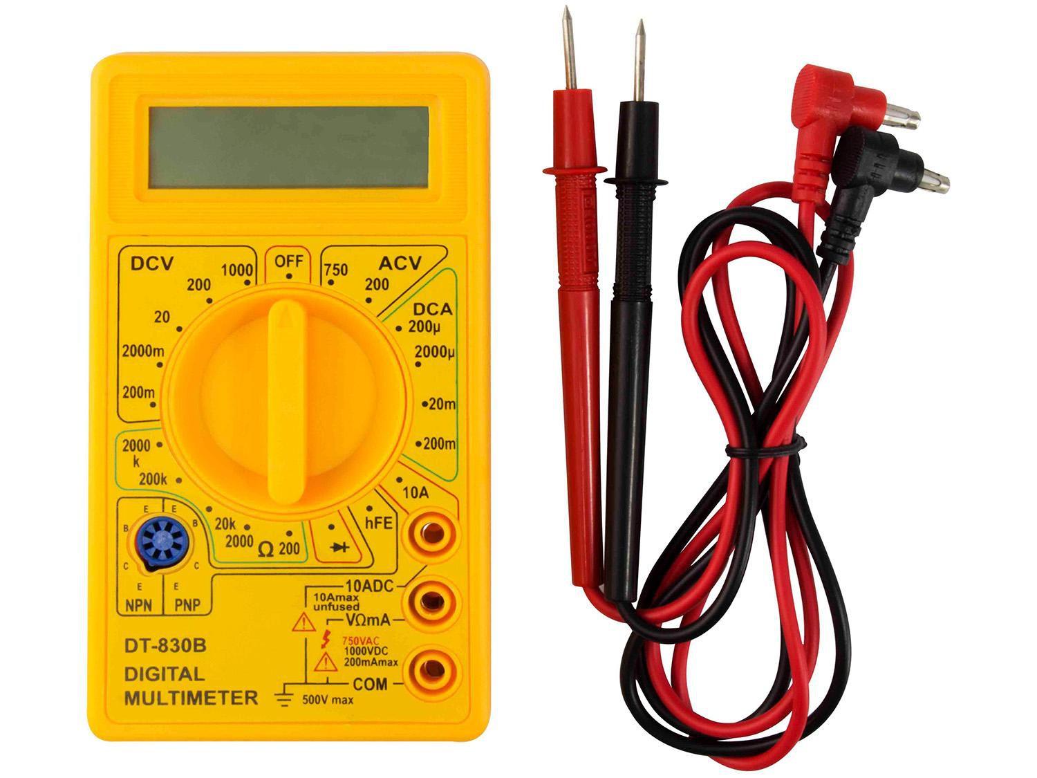 Dimensões da Peça: - Multímetro Digital: 12,3 x 6,8 x 2,5cm - Ponta de prova vermelha: 67 x 2,1 x 0,8cm - Ponta de prova preta: 67 x 2,1 x 0,8cm - Dimensões da Embalagem: 19,5 x 14,5 x...
